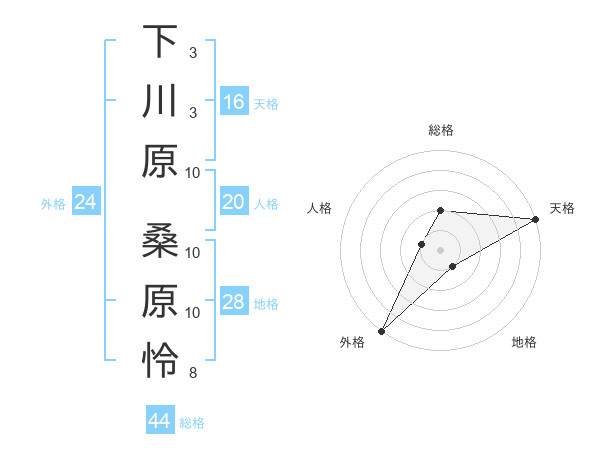 下川原 桑原怜さんの天格は16画の5点!