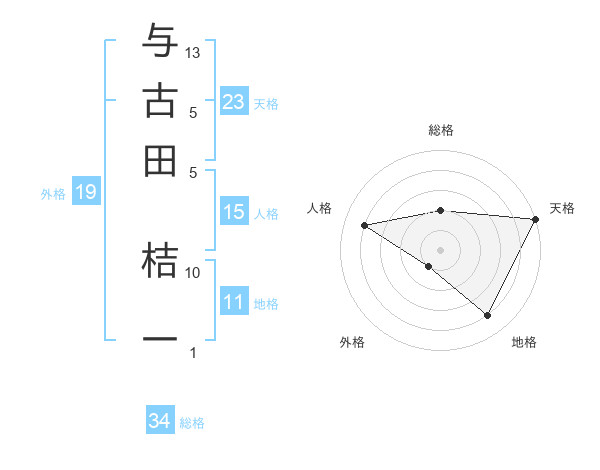 与古田 桔一さんの天格は23画の5点!