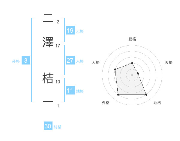 二澤 桔一さんを姓名の画数から五運を鑑定