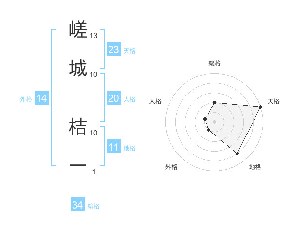 嵯城 桔一さんを姓名の画数から五運を鑑定
