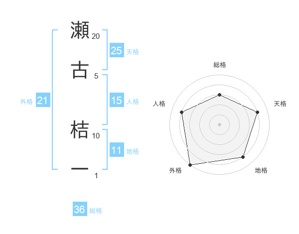 瀬古 桔一さんを姓名の画数から五運を鑑定