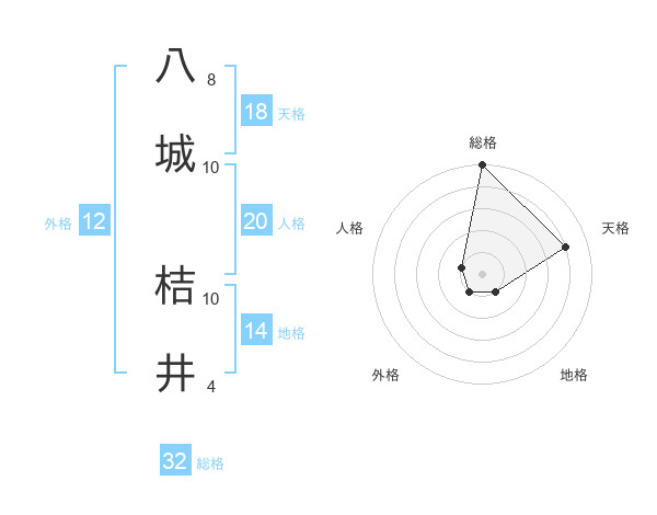 八城 桔井さんの総格は32画の5点!