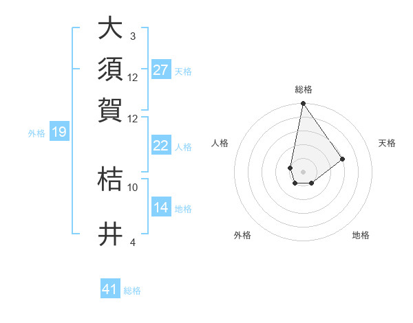 大須賀 桔井さんを姓名の画数から五運を鑑定