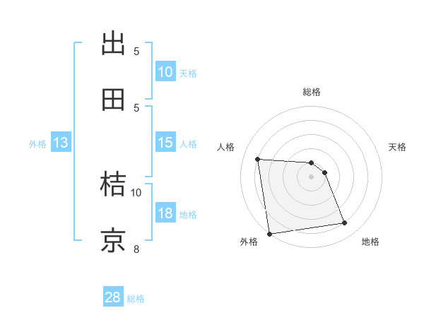 出田 桔京さんの外格は13画の5点!