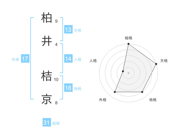 柏井 桔京さんを姓名の画数から五運を鑑定
