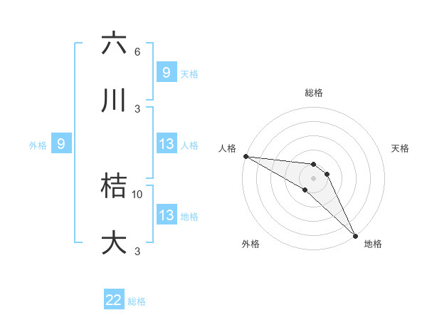 六川 桔大さんの総格は22画の1点!