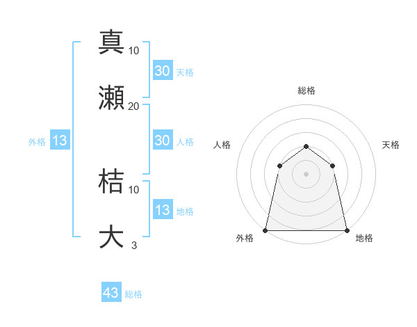 真瀬 桔大さんの外格は13画の5点!