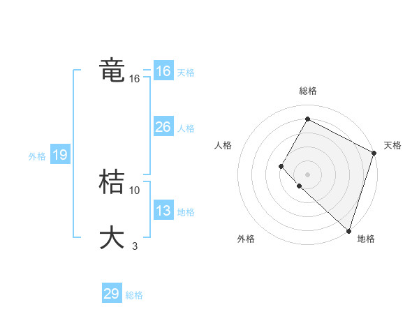 竜 桔大さんの総格は29画の4点!