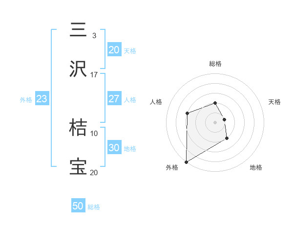 三沢 桔宝さんを姓名の画数から五運を鑑定