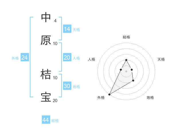中原 桔宝さんを姓名の画数から五運を鑑定