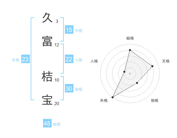 久富 桔宝さんの外格は23画の5点!