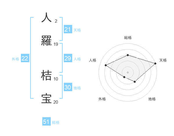 人羅 桔宝さんを姓名の画数から五運を鑑定