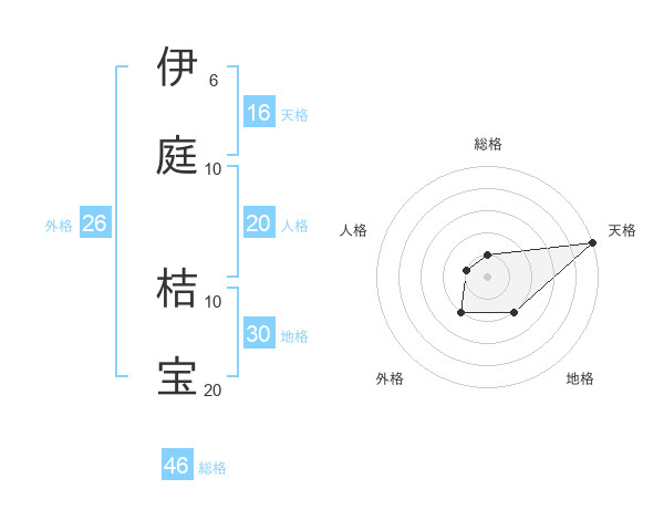 伊庭 桔宝さんを姓名の画数から五運を鑑定