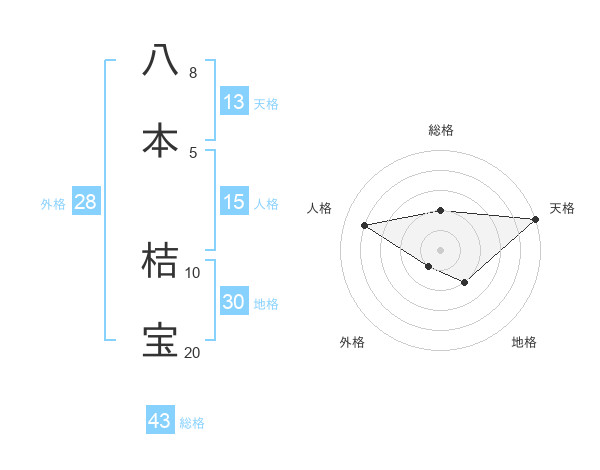 八本 桔宝さんを姓名の画数から五運を鑑定