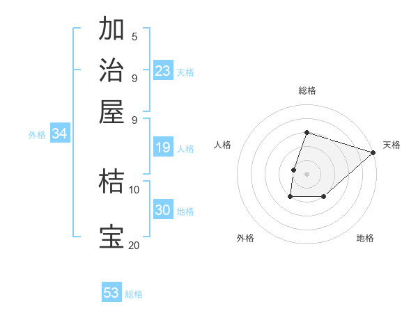 加治屋 桔宝さんの天格は23画の5点