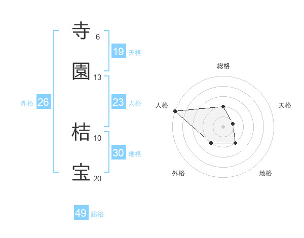 寺園 桔宝さんを姓名の画数から五運を鑑定