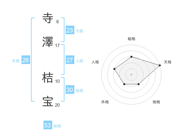 寺澤 桔宝さんの総格は53画の3点!