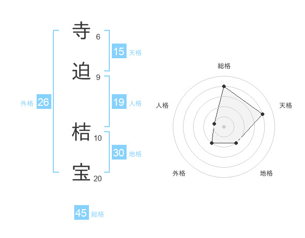 寺迫 桔宝さんの総格は45画の4点!
