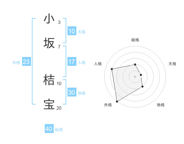 小坂 桔宝さんの外格は23画の5点!