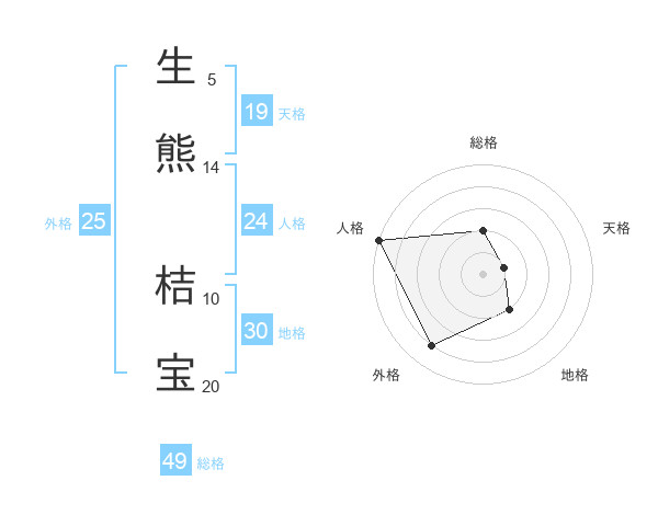 生熊 桔宝さんの総格は49画の2点!