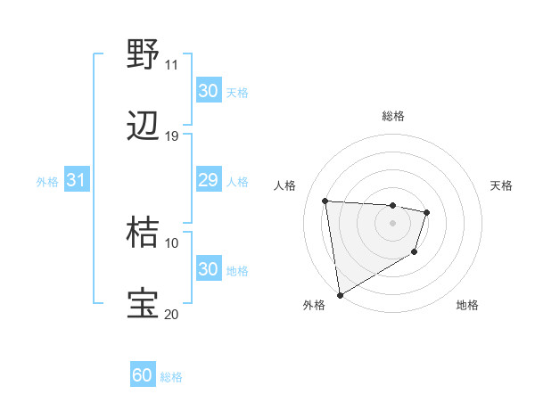 野辺 桔宝さんの外格は31画の5点!