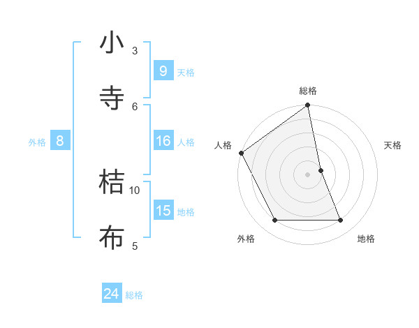 小寺 桔布さんの総格は24画の5点!