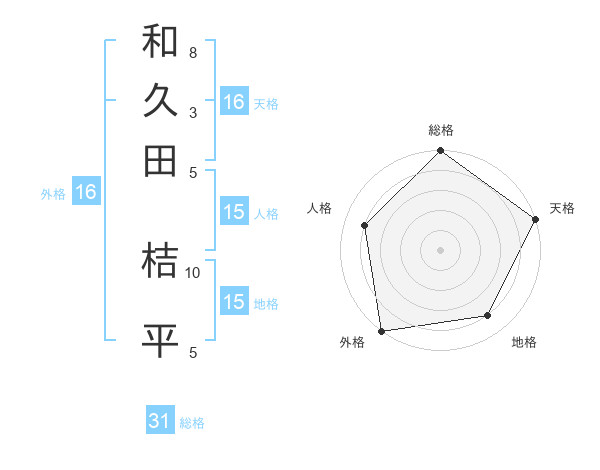 和久田 桔平さんを姓名の画数から五運を鑑定