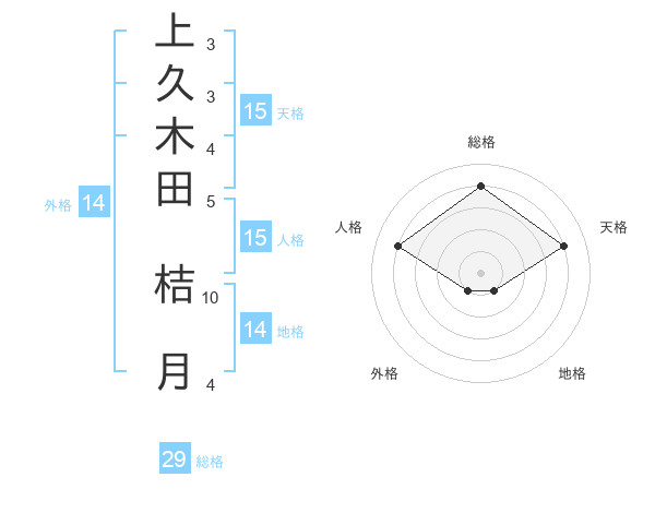 上久木田 桔月さんを姓名の画数から五運を鑑定