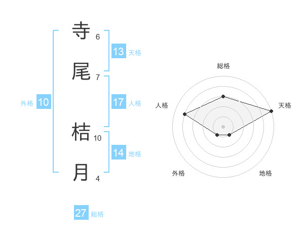 寺尾 桔月さんの天格は13画の5点!