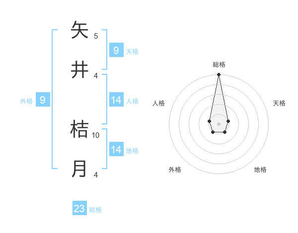 矢井 桔月さんの総格は23画の5点!