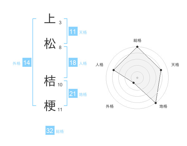 上松 桔梗さんの総格は32画の5点!