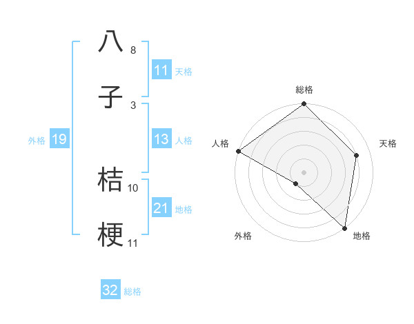 八子 桔梗さんの総格は32画の5点!