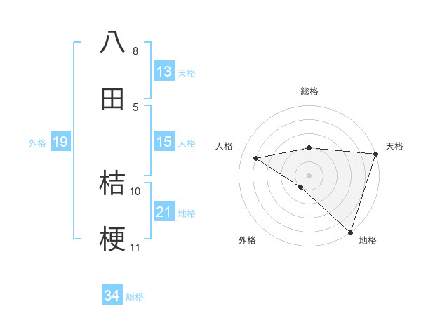 八田 桔梗さんを姓名の画数から五運を鑑定