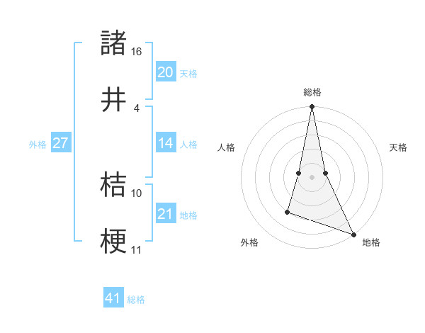 諸井 桔梗さんを姓名の画数から五運を鑑定