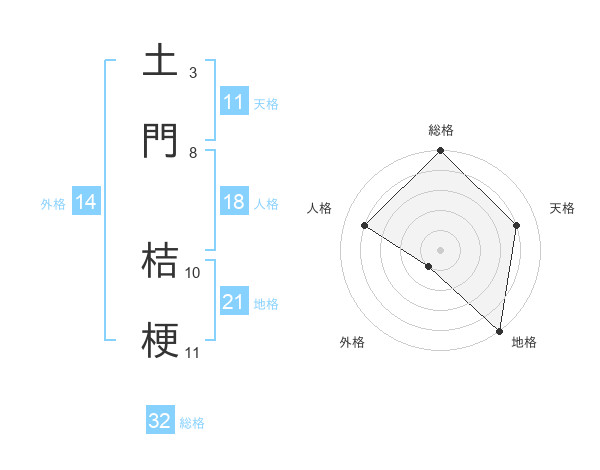 土門 桔梗さんの総格は32画の5点!