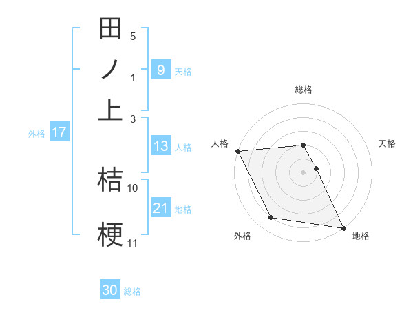田ノ上 桔梗さんを姓名の画数から五運を鑑定