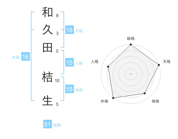 和久田 桔生さんを姓名の画数から五運を鑑定