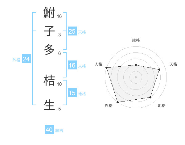 鮒子多 桔生さんの総格は40画の2点!