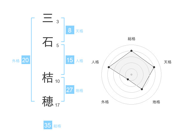 三石 桔穂さんの総格は35画の4点!