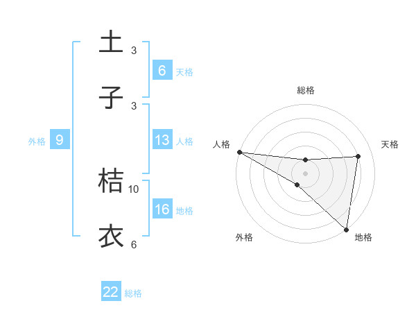 土子 桔衣さんを姓名の画数から五運を鑑定