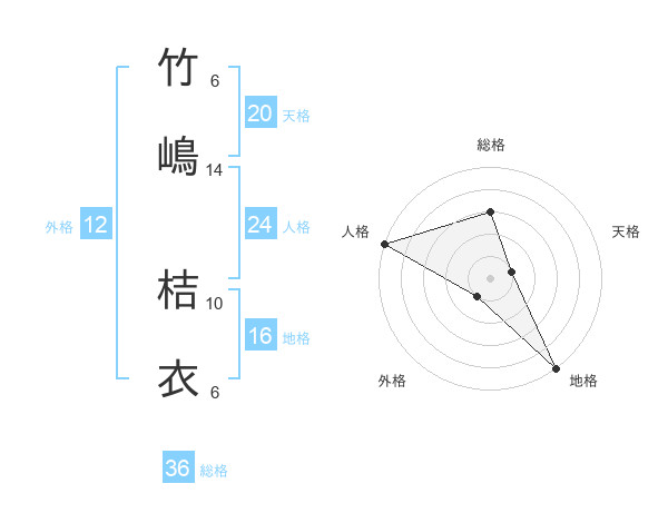 竹嶋 桔衣さんを姓名の画数から五運を鑑定