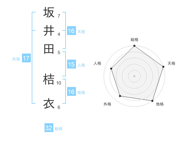 坂井田 桔衣さんの天格は16画の5点!