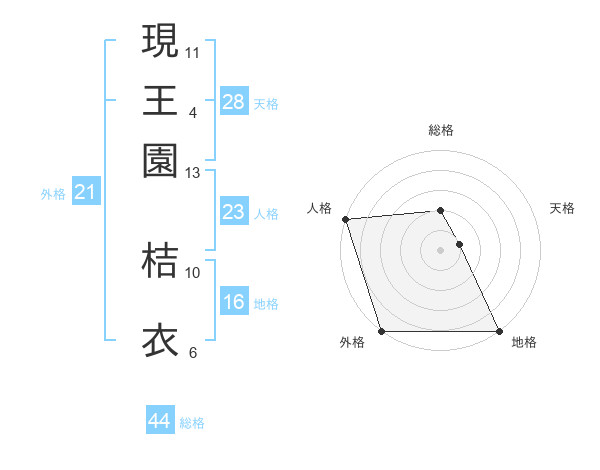 現王園 桔衣さんの総格は44画の2点