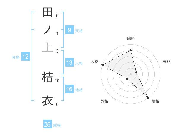 田ノ上 桔衣さんを姓名の画数から五運を鑑定