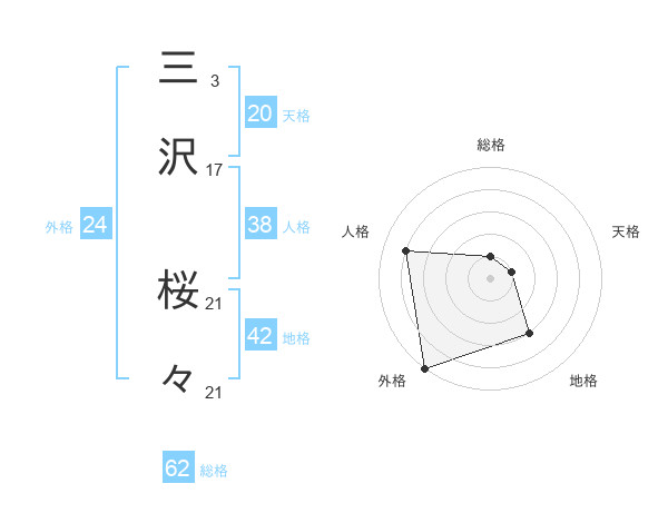 三沢 桜々さんを姓名の画数から五運を鑑定