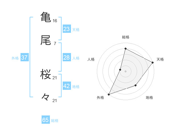 亀尾 桜々さんを姓名の画数から五運を鑑定