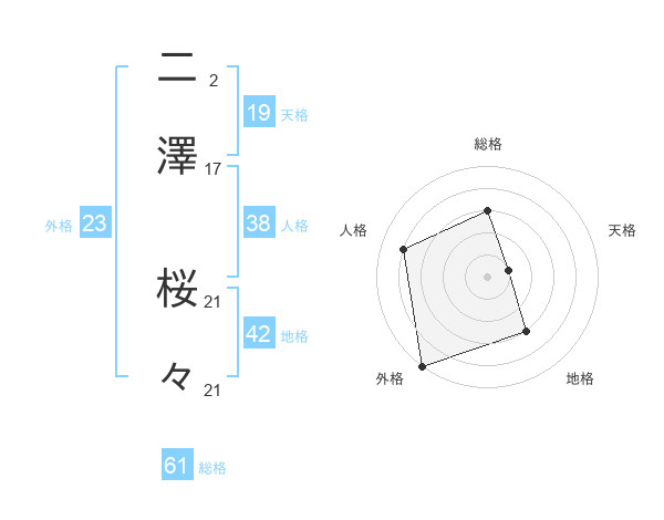 二澤 桜々さんを姓名の画数から五運を鑑定