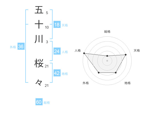 五十川 桜々さんを姓名の画数から五運を鑑定