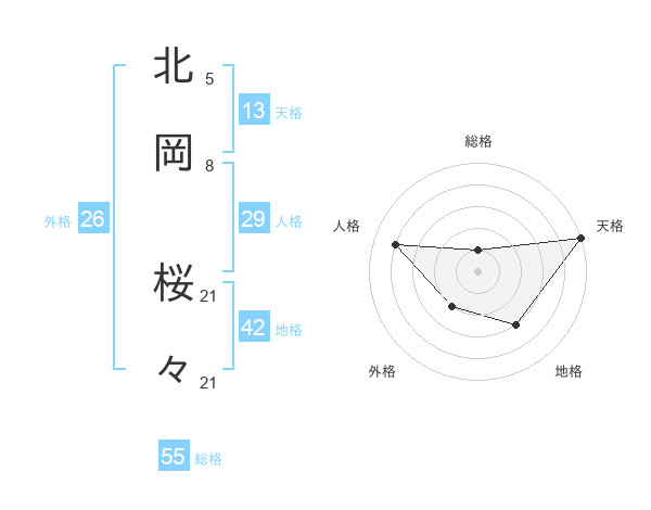 北岡 桜々さんを姓名の画数から五運を鑑定