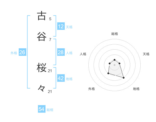 古谷 桜々さんを姓名の画数から五運を鑑定